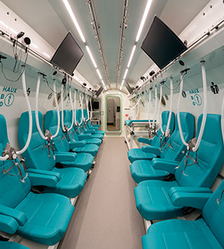 Pacienţii stau de obicei în scaune confortabile. Există şi posibilitatea unei tărgi medicale ce poate fi configurată în așa fel încât să vă aflați într-o poziție înclinată pentru un plus de confort în cazuri selectate.