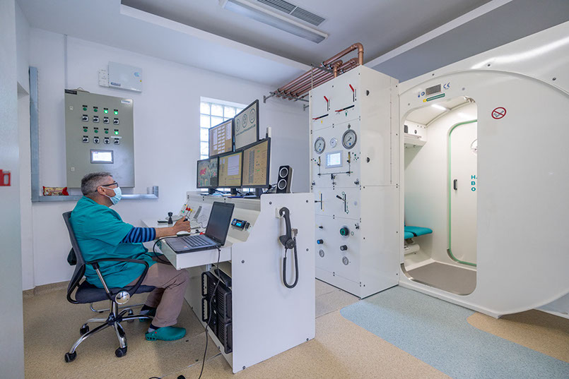 Centrul Meical Naturalia deţine cea mai modernă cameră hiperbară multiloc de uz medical din România – HAUX Starmed 2200 XL, similară cu cea folosită la Clinică Nera. A fost fabricată în Germania, după standardul EN14931 privind construcţia şi funcţionalitatea camerelor hiperbare, EN12021 privind presurizarea şi respectă normele stricte de securitate la incendii, EN16081 şi alte norme europene pentru instalaţiile din interiorul camerei, standardizarea materialelor interne folosite, precum şi folosirea unor echipamente medicale de primă urgenţă (ex: defibrilator, ventilator, injectomat) special realizate pentru utilizarea în condiţii hiperbare. Este pusă în funcțiune de către specialiștii HAUX și are acreditarile UE pentru a funcționa inclusiv în România.