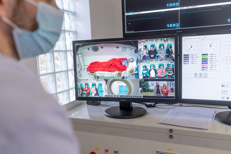 Camera hiperbară HAUX din cadrul Centrului Medical Naturalia este echipată cu sisteme de divertisment audio/video, astfel încât să puteți viziona programe de televiziune sau filme în timp ce vă aflați în cameră. Unii pacienți, de asemenea, ascultă muzică prin intermediul sistemului de difuzoare, în timp ce alții citesc. Cel mai important lucru este să te relaxezi şi să respiri normal.